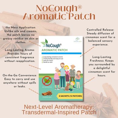 Excelgo Pharma® NoCough® Aromatic Patch is a wearable cinnamon-scented patch designed to provide a long-lasting, comforting fragrance and a gentle warming sensation through advanced aromatic diffusion technology. Created for relaxation and everyday comfort, it offers a soothing aromatic experience that helps you feel refreshed and at ease throughout the day.