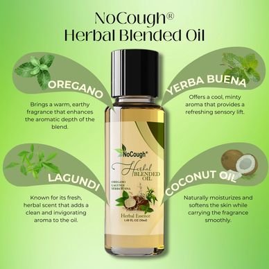 Excelgo Pharma® NoCough® Herbal-Blended Aromatherapy Oil is a soothing and aromatic massage oil infused with natural herbal essences that deliver a refreshing scent and a gentle cooling sensation on the skin. Crafted to promote relaxation and everyday self-care, it provides a calming and revitalizing experience that helps you unwind and feel refreshed—perfect for your daily wellness routine.
